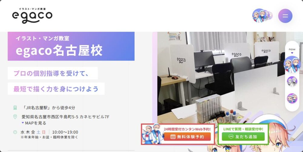 egaco名古屋校は、プロのイラストレーターや漫画家から直接指導を受けられるイラスト教室です。
