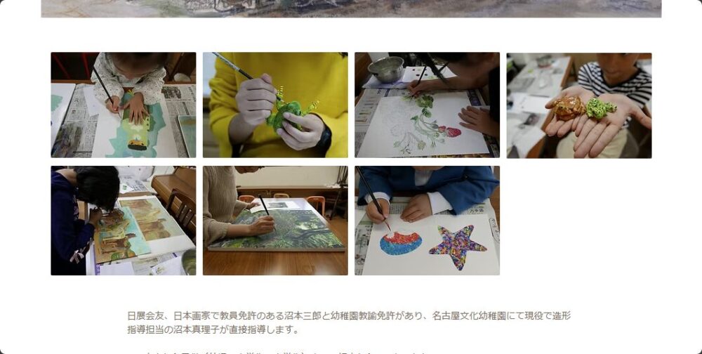 日展会友で武蔵野美術大学日本画科卒の沼本三郎氏と、幼稚園教諭免許を持ち名古屋文化幼稚園で現役造形講師を務める沼本真理子氏が直接指導します。